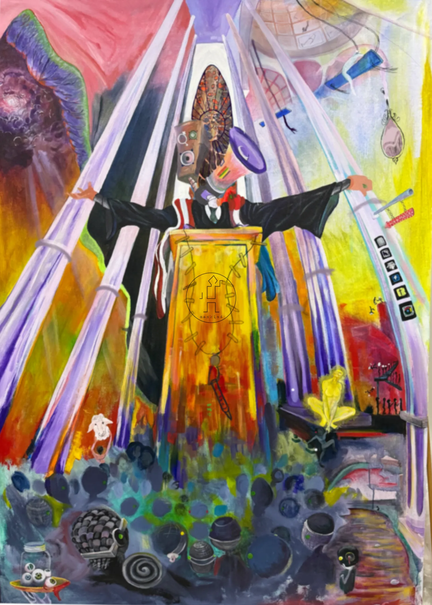 Every piece contains hidden Easter eggs — symbolic elements and secret layers revealed only to those who own the work. Private revelations turn each painting from a visual encounter into an initiation, binding collector and artist in a shared code of meaning.